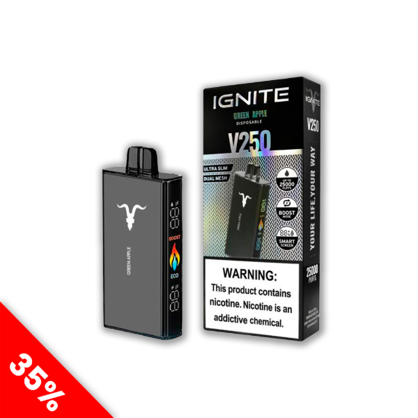 🔥 Ignite V250 Black Green Apple Ice – Vape descartable original con hasta 25.000 PUFFS